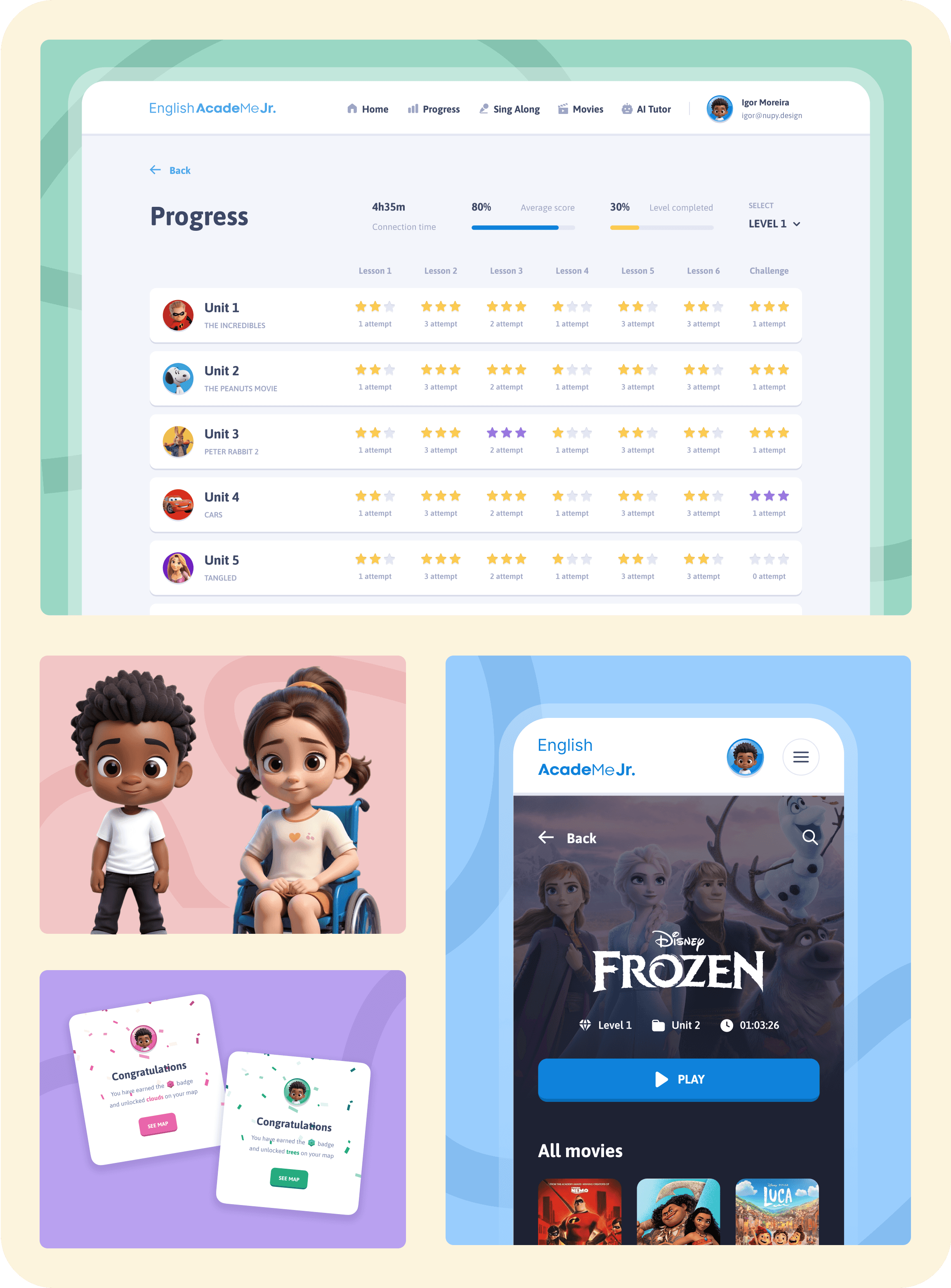 Redesign da plataforma de ensino de idiomas English AcadeMe Jr